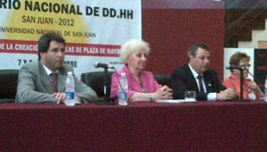 San Juan, 7 de Noviembre.- Esta mañana arribó a la provincia la titular de Abuelas de Plaza de Mayo, Estela de Carlotto, para brindar una charla sobre derechos humanos en el edificio del Rectorado de la UNSJ. Antes, saludó al gobernador Gioja y se refirió al caso Tejada, único sanjuanino condenado por apropiarse de un bebé hijo de desaparecidos.