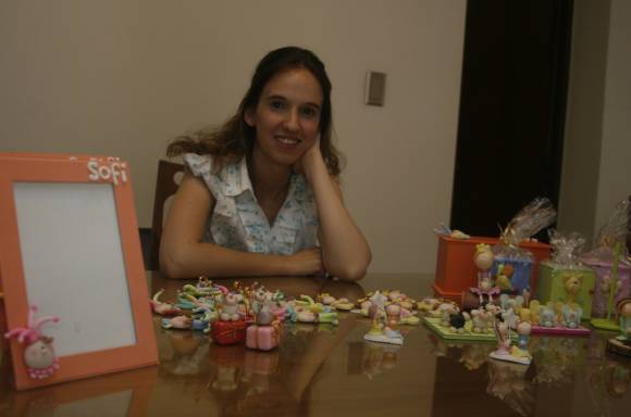 Esa actividad que se inició como un hobby se convirtió en su trabajo. No esta sola en esta tarea, le dan una mano su mamá y papá. Su especialidad son los souvenirs realizados en porcelana fría y los comercializa bajo el nombre de ‘Naranjo en Flor’.