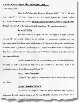 Ahora, el magistrado deberá iniciar un proceso de extradición ante las autoridades italianas para poder continuar con los procesos que se le siguen al ex militar en San Juan. Entre esas causas están la llamada causa Bustos, en la que sufrieron apremios ilegales figuras políticas de la provincia como el gobernador José Luis Gioja, su hermano el senador César Gioja y el cortista José Soria Vega, entre otros.