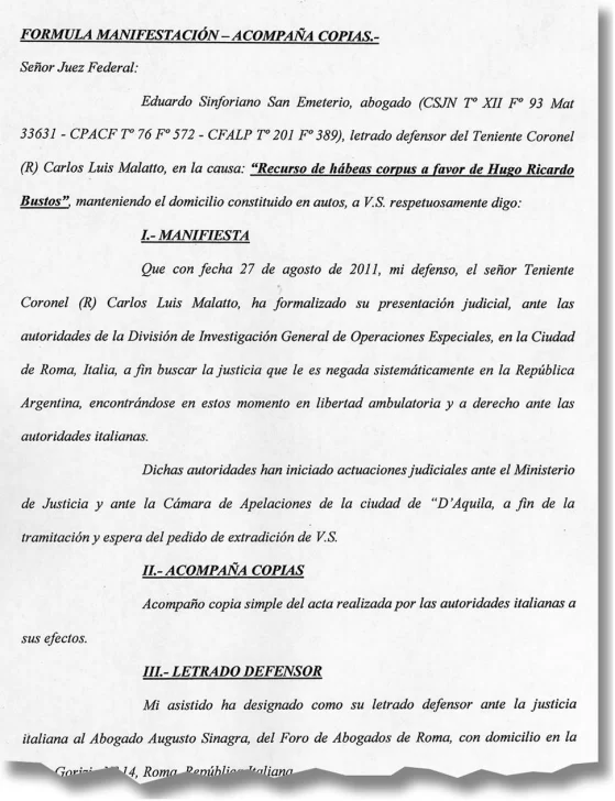 El teniente coronel retirado Carlos Luis Malatto, acusado en varias causas por delitos de lesa humanidad en la provincia mientras integraba un grupo de oficiales que actuó en el RIM 22 durante la dictadura, viajó a Italia pocos días antes de que el juez federal de San Juan, Leopoldo Rago Gallo, pidiera su orden internacional de captura a través de INTERPOL.
