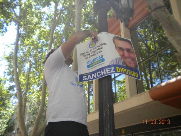 De esta manera el partido que llevó a Alberto Sánchez como candidato en primer término, fue el primero en salir a realizar las tareas de limpieza, que ordena la legislación vigente. Todavía se pueden ver afiches de candidatos de la Izquierda, UCR, Cruzada Renovadora y FpV colocados, a la espera de su retiro.