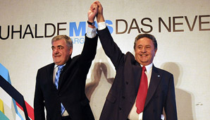 Buenos Aires, Eduardo Duhalde y Mario Das Neves se mostraron por primera vez juntos desde que confirmaron que compartirán fórmula en Octubre, cuando pelearán por llegar a la Casa Rosada.