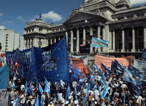 La apertura del 129 período ordinario en el Congreso Nacional tuvo como escenario exterior una plaza diferente, con notorios espacios libres, mucha juventud presente y banderas y pancartas predominantemente bonaerenses que no sólo alentaban a Cristina, sino que recordaban a Néstor como el eje del movimiento kirchnerista. Afuera reinó el buen clima, sin inconvenientes, a pesar de los bombos, platillos y chiflidos, todos siguieron atentamente el discurso de la presidenta a través de una pantalla gigante que se instaló para la ocasión.