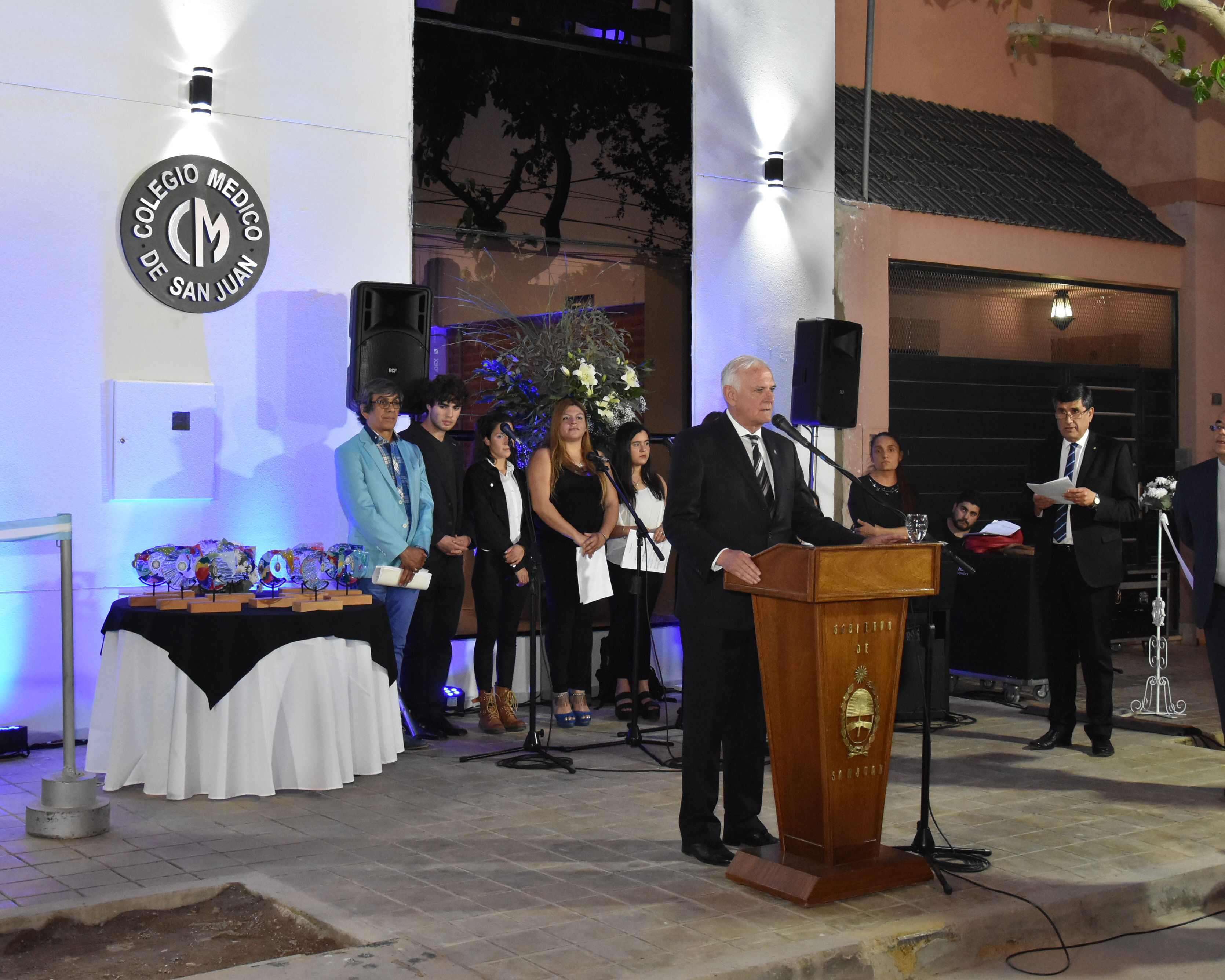 En el acto también estuvieron presentes el presidente de la Confederación Médica de la República Argentina (COMRA), Jorge Coronel, la ministra de Salud, Alejandra Venerando, y el intendente de la Municipalidad de la Ciudad de San Juan, Franco Aranda.