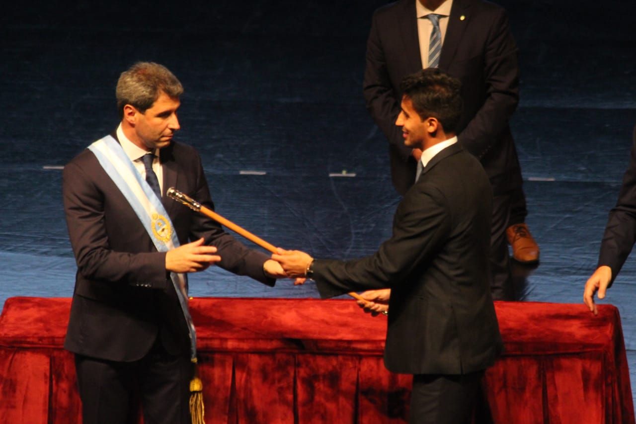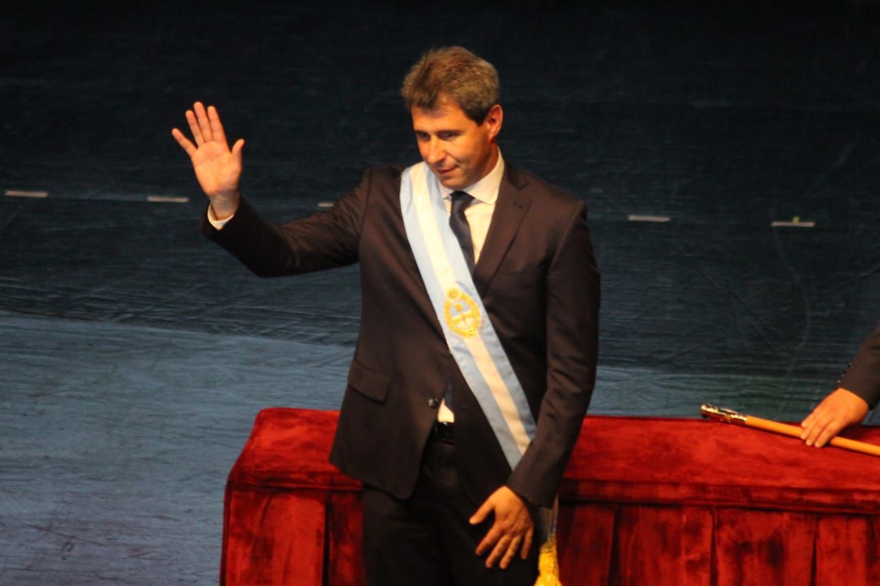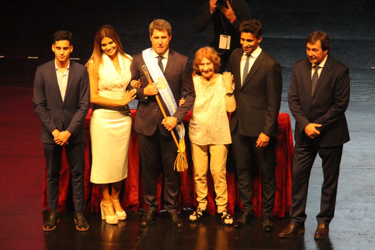 El momento más emotivo para el gobernador Sergio Uñac fue cuando en el Teatro del Bicentenario recibió los atributos de mando por parte de su familia.