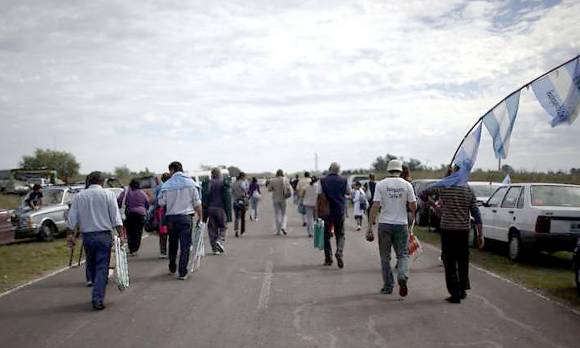 Al grito de "causa nacional", en alusión irónica a la frase pronunciada por el ex presidente Néstor Kirchner en 2006 en el corsódromo local, y "Gualeguaychú no va a aflojar", los asambleístas ratificaron la continuidad de las medidas. Uno de los integrantes de la asamblea Martín Alazard denunció que "está claro que han negociado el corte por el voto de la UNASUR, el dragado del río, el tren binacional entre Concordia y Salto y otras cuestiones". Después del fallo de la Justicia que se conoció la noche del martes, en el que se instaba al Gobierno a cumplir con una sentencia previa para garantizar el libre tránsito en la ruta 136, la presidenta Cristina Fernández convocó al mediodía a una reunión en Olivos para definir la estrategia. Allí, dialogó con Aníbal Fernández, Alak, y el titular de Gendarmería, Héctor Schenone, para discutir la postura oficial frente a la orden de desalojo y se decidió presentar un escrito ante la Justicia Federal de Concepción del Uruguay como "querellante" en la causa. Aníbal Fernández señaló que el Procurador del Tesoro, Joaquín Da Rocha presentó las denuncias penal y civil "con nombre y apellido contra aquellos que con su conducta han permitida por acción o por omisión la comisión de delitos", aunque no dio el listado. Según precisó durante un informe ante la prensa, la denuncia penal es por la violación de los siguientes artículos del Código en la materia: entorpecimiento del normal funcionamiento de los transportes, homicidio culposo, amenazas, amenazas agravadas, daños a bienes públicos, instigación a cometer delitos, intimidación pública y apología del delito. La presentación incluye también atentado al orden público, delitos que comprometen la paz y la dignidad de la Nación, atentado al orden constitucional y la vida democrática, sedición, atentado y resistencia a la autoridad y encubrimiento. En tanto, la denuncia civil es porque esas personas "generaron el cierre de centenares de negocios, pérdida del trabajo del transporte, del turismo y de exportaciones e importaciones, de obstrucciones que impactaron en los pueblos aledaños, de imposibilidad de movimientos de productos argentinos colocados en el Uruguay y de la compra de productos uruguayos que necesitan los argentinos". En caso de prosperar la querella podrá pedir la investigación a cada uno de los asambleístas, en el caso que no depongan su actitud. El jefe de ministros insistió anoche en que para el Gobierno nacional el conflicto con Uruguay "terminó cuando se dictaminó el fallo" de La Haya en abril pasado y advirtió a los asambleístas que han llevado adelante "actitudes radicalizadas".