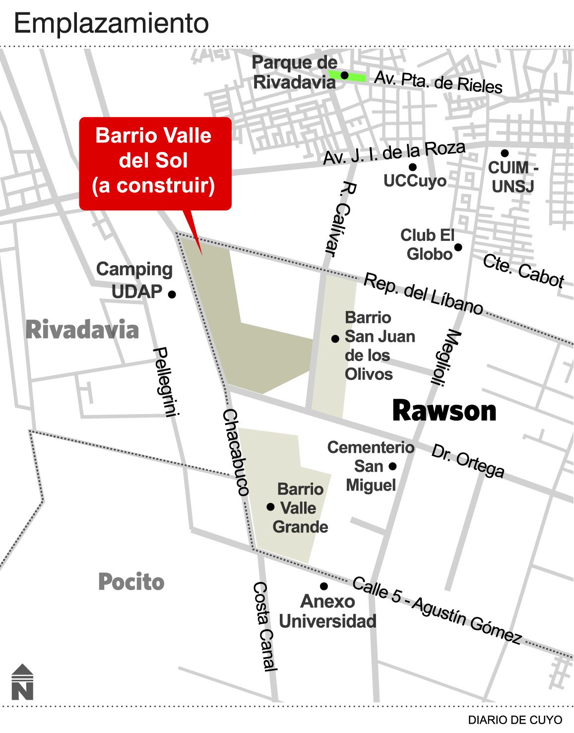 Junto a los predios para los privados, el proyecto de construcción del barrio Valle del Sol también contemplará el desarrollo de departamentos en las cabeceras de algunas manzanas, similares al Complejo Residencial Maipú que se edificará en Capital. Al igual que esa iniciativa, los beneficiarios saldrán de un sorteo que se llevará adelante cuando esté todo definido, indicaron las fuentes. Así, el nuevo barrio de Rawson contemplara un mix entre terrenos a la venta para privados y departamentos que irán a sorteo. Así, se alcanzarán unas 1.100 unidades habitaciones, lo que lo convertirá en un complejo un poco más grande que el Valle Grande y por debajo del Aramburu, que tiene 1.256 casas.