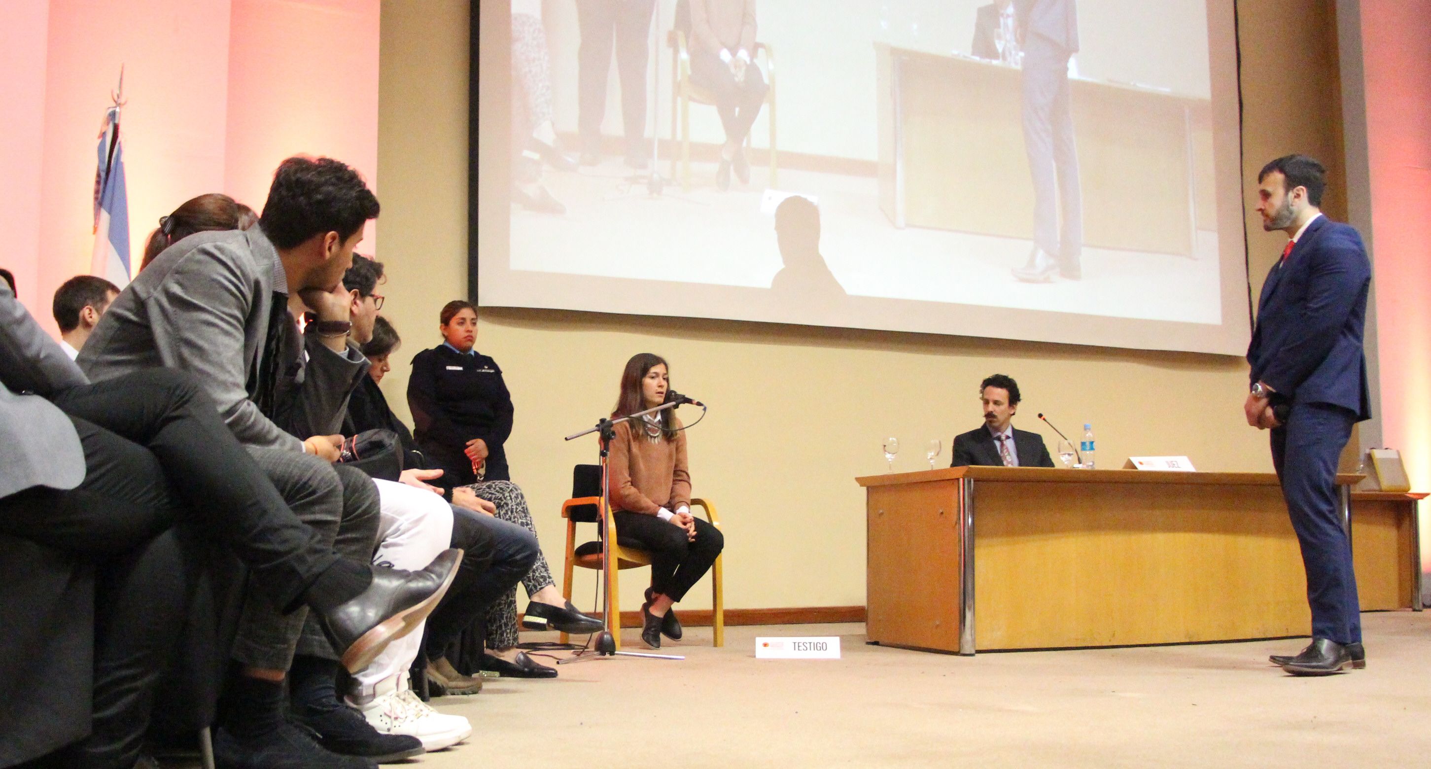 La puesta en escena comprendió un homicidio agravado por el vínculo. La acusada fue personificada por la hockista Luciana Agudo. La escena del crimen y los antecedentes de la relación de la pareja fueron expuestos por cada uno de los testigos seleccionados que subieron al estrado, mientras que los roles de la defensa, la fiscalía y el juez fueron representados por funcionarios judiciales y abogados.
