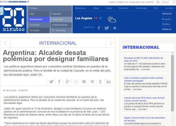 Hoy todo fue más allá. Medios de España, Chile, Uruguay, Colombia, México y Perú, entre otros, se hicieron eco del escándalo y lo publicaron en sus páginas web. DIARIO DE CUYO hizo un repaso y te lo muestra en una galería de fotos.