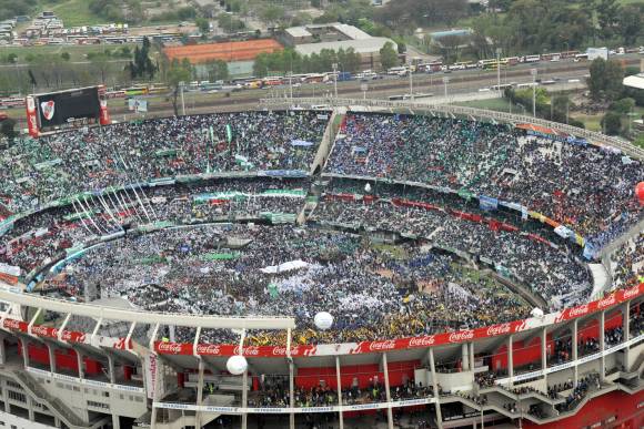 Como celebración del Día de la Lealtad por adelantado, Moyano convocó al estadio de River a trabajadores de distintas ramas productivas que comenzaron a llegar a media mañana y hacia el mediodía ya habían colmado las instalaciones para esperar los mensajes.