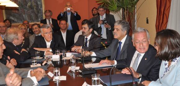 Los gobernadores que ayer firmaron el Acuerdo Federal de Desarrollo Minero van a trabajar para incorporar en sus provincias los dos pilares del modelo minero sanjuanino: los Fondos Fiduciarios para realizar obras que se fondean con plata que se les cobra aparte a las mineras, y el recálculo de las regalías para cobrar íntegro el 3% sobre facturación, dos ideas en las que San Juan es pionero en aplicar, según aseguró ayer el gobernador Gioja. ‘Hemos transmitido esta experiencia, a partir de ahora son todas las provincias las que harán lo mismo, hay un acuerdo con objetivos en común, con una clara definición política de que hay que desarrollar equilibradamente el país, porque la minería está en las zonas más postergadas, y es fuente de desarrollo‘, dijo Gioja. Se trata de los gobiernos que el 15 de febrero pasado crearon la Organización Federal de Estados Mineros (Ofemi), integrada por Salta, Jujuy, La Rioja, Santa Cruz, Río Negro, Mendoza, Neuquén, Chubut y Catamarca, además de San Juan. Todas ellas, a través de sus gobernadores y representantes, y junto al ministro de Planificación Federal, Julio De Vido sellaron ayer el pacto que entre otras cosas les permitirá consolidar además la figura de las empresas públicas mineras provinciales como estrategia para ‘ampliar la participación en la renta minera‘. La Ofemi de ahora en más funcionará también como asesora de la política minera nacional.