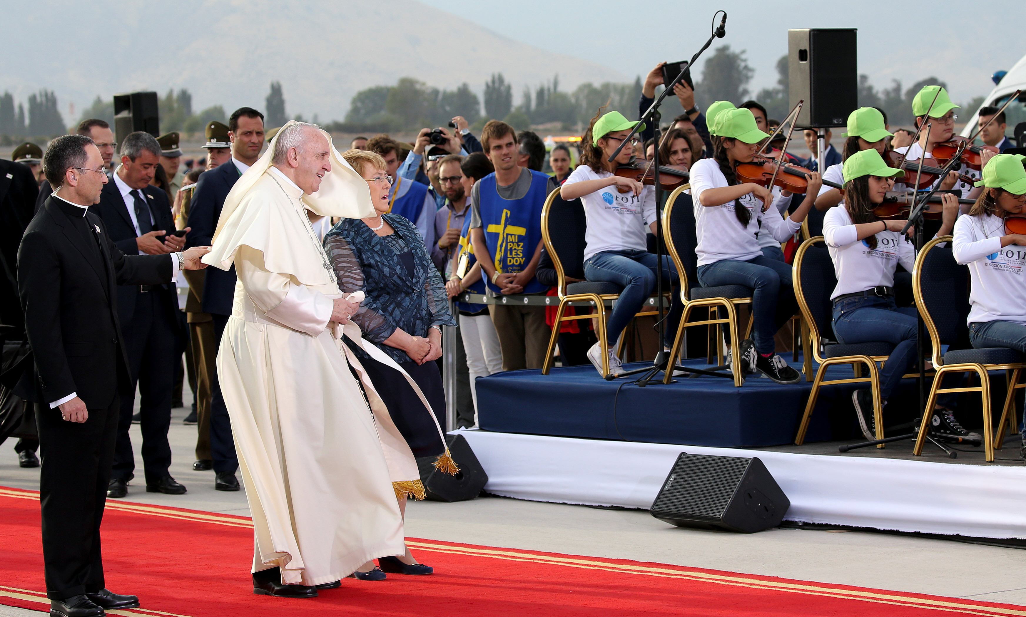 “¡Bienvenido a Chile, Papa Francisco! Lo recibe un país que ha cambiado desde la visita de Juan Pablo II (1987). Somos una sociedad más justa, libre y tolerante, pero con desigualdades”, escribió más tarde Bachelet en su cuenta de Twitter.