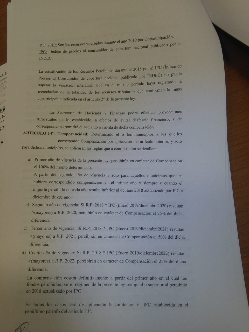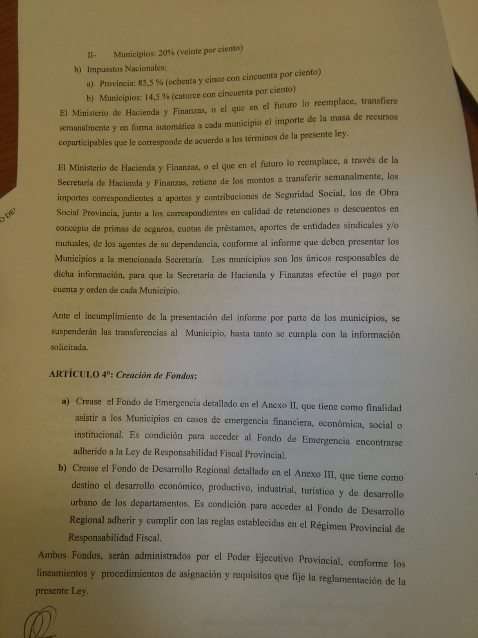 Este es el proyecto de Ley de Coparticipación Municipal y Ley de Responsabilidad Fiscal Municipal: