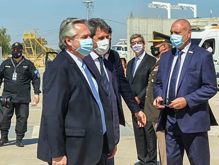 El Presidente llegó minutos antes del mediodía al Aeropuerto Domingo Faustino Sarmiento y fue recibido por el gobernador Serio Uñac. Estuvo acompañado por el Secretario General de la Presidencia, Julio Vitobello; el Ministro del Interior, Eduardo de Pedro; el Ministro de Desarrollo Productivo, Matias Kulfas; y el Ministro de Obras Públicas, Gabriel Katopodis.