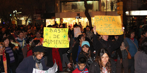 Carteles con la frase “Basta de Aumento” o “Basta de Tarifazos” se leyó entre otros en la convocatoria al igual que se hicieron sentir los silbatos, las ollas y los petardos.
