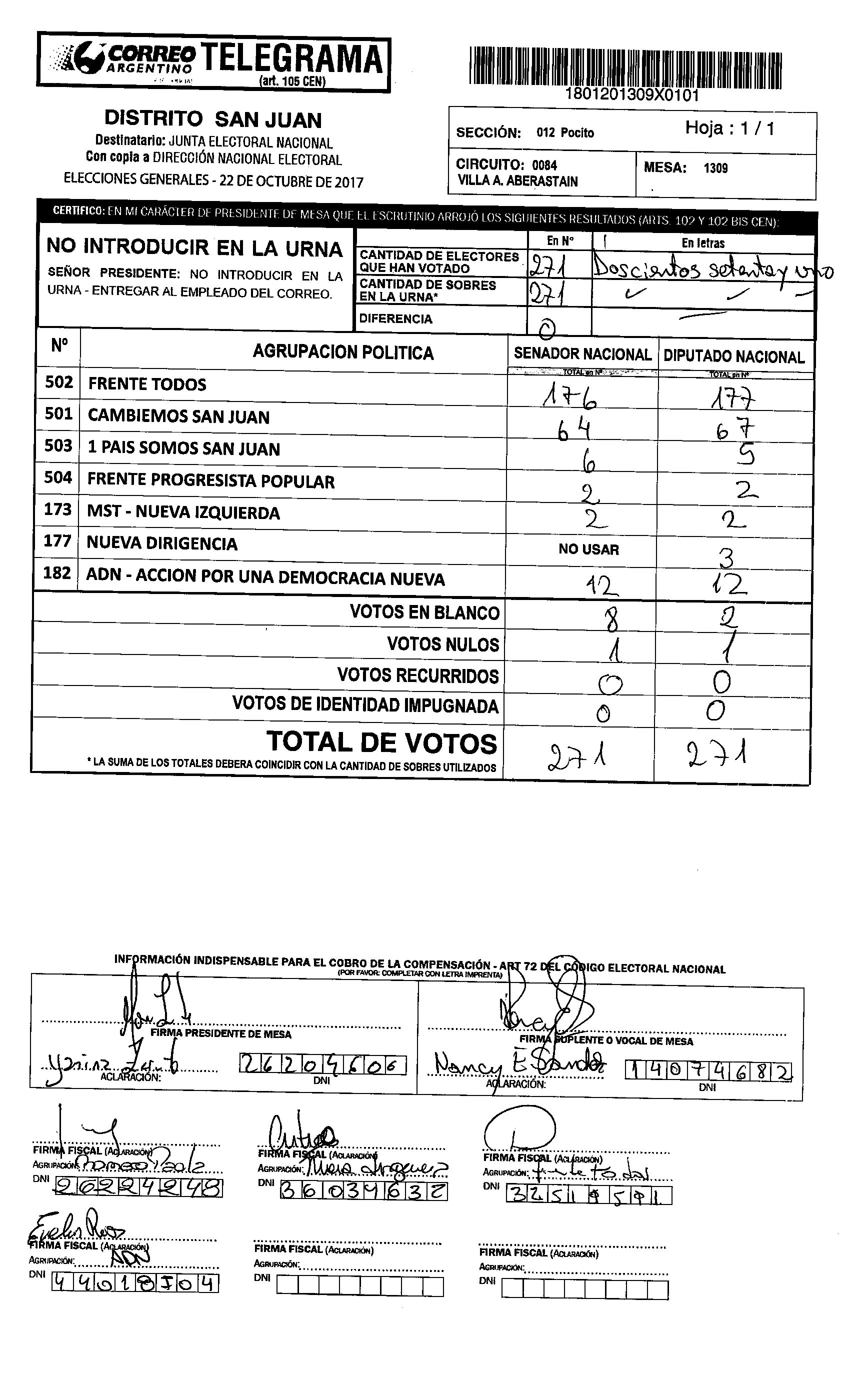 Cristina López de Abraca, electa senadora nacional por San Juan por el Frente Todos, votó en la mesa 1160 de la Escuela Camilo Rojo de Albardón. En esa mesa GANÓ CAMBIEMOS.