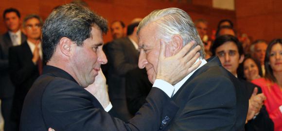 José Luis Gioja se paró en el centro del escenario del Auditorio Juan Victoria para recibir a su sucesor en el sillón de Sarmiento, Sergio Uñac, quien bajaba por una de las escaleras laterales, junto al vice Marcelo Lima, recibiendo el saludo de los presentes. Fue el preludio de un traspaso de mando lleno de sensaciones, que se cristalizó ayer cuando el primero le colocó la banda al pocitano. Entre los dos amigos hubo abrazos con fuertes palmadas, besos en la mejilla, miradas con los ojos humedecidos, palabras de agradecimiento y un cariño que se puso de manifiesto cuando ambos juntaron sus frentes. No era para menos. Gioja deja la Gobernación tras 12 años y Uñac es el encargado de continuar un proyecto político que dejó obras imponentes y transformaciones en la provincia, al que tratará de darle su sello personal.