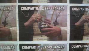 San Juan 29 de marzo.- En el día de ayer un porcentaje importante de los espacios, en Capital, reservados para la cartelería publicitaria se vieron cubiertos por una escena ya conocida por todos los argentinos. Bajo la leyenda “Compartimos esperanzas”, se puede ver el brazo de la presidente Cristina Fernández, entregando un mate al papa Francisco, el día en que el sumo pontífice recibió a la mandataria argentina de manera exclusiva.