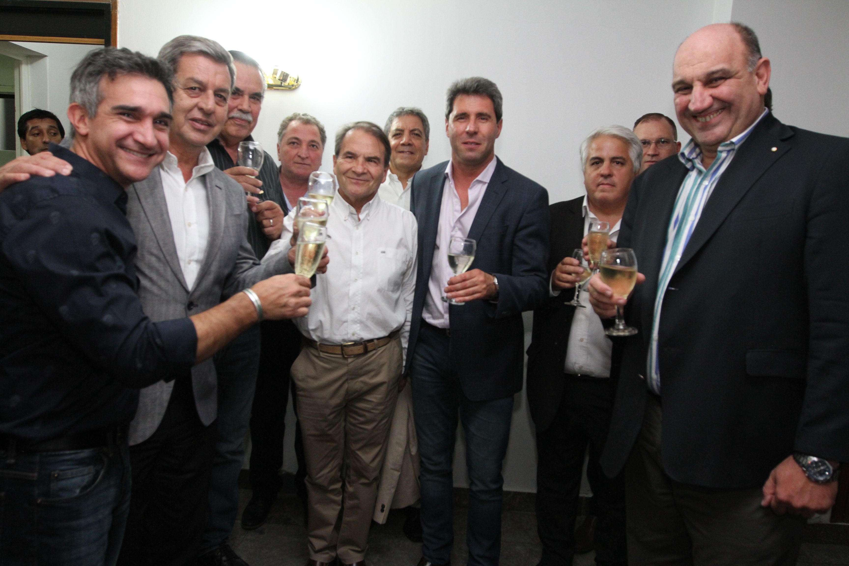 Momento del brindis realizado anoche en el edificio de la Federación Económica, en Libertador San Martín 575 Este.