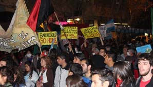 San Juan, 25 de septiembre.- Pasadas las 19 horas de hoy, manifestantes se concentraron en la Plaza 25 de Mayo para reclamar que se esclarezca el episodio ocurrido con eld errame de cianuro en la mina Veladero y además, a viva voz, pidieron "que se vaya Barrick", además de ensalzar la crítica hacia el Gobierno provincial y los controles ambientales.