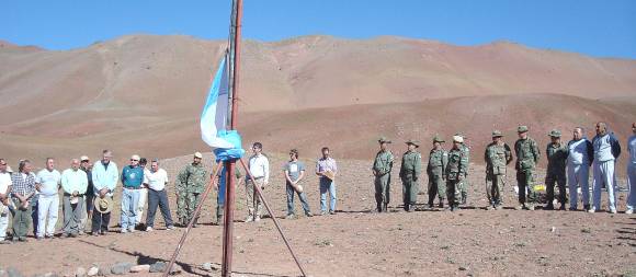 Tras izar la bandera, tarea que recayó en las manos de los dos únicos intendentes presentes en la comitiva, Marcelo Lima (Capital) y Robert Garcés (Calingasta), se brindó una charla explicativa desde el punto de vista estratégico militar sobre el Cruce Sanmartiniano. Estuvo a cargo del jefe del RIM 22, coronel Luis María Bordet.