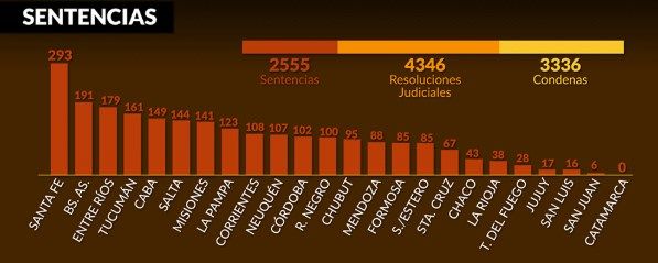 Además, en ese período sólo hubo 6 sentencias en San Juan, sólo delante de Catamarca, sin sentencias en ese tiempo. En Santa Fe hubo 293 condenados entre 2014 y 2016.
