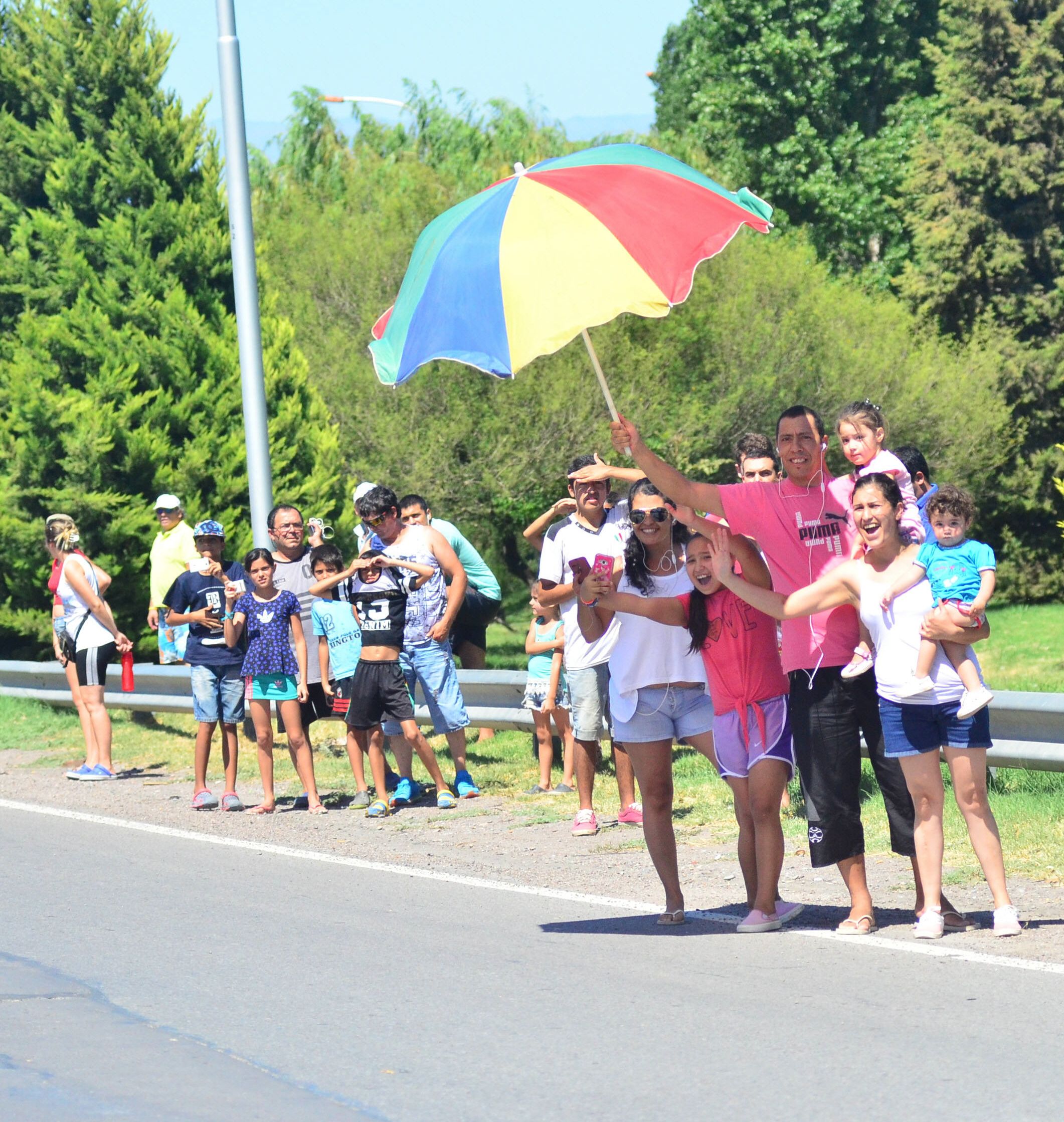 A pesar del insoportable calor, la gente disfrutó de la última etapa de la Vuelta. Ocupó las sombras de los árboles, llevó sombrillas, paraguas y hasta carpas para cubrirse del sol y así le hizo frente al clima. Incluso hubo algunos que hasta llegaron con piletas inflables para que los más chicos pudieran sobrellevar la alta temperatura, que no opacó la fiesta del ciclismo.