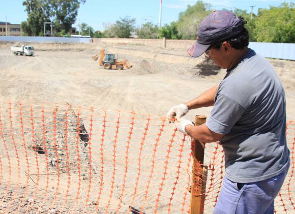 Hasta ahora, los trabajos han quedado reducidos casi con exclusividad a máquinas. Se están usando retroexcavadoras para hacer el pozo y los camiones llevan sacados unos 21 mil metros cúbicos de tierra. Una parte se tiró y otra más pequeña quedó de reserva a un costado del predio, para usarla de relleno en los lugares donde haga falta.