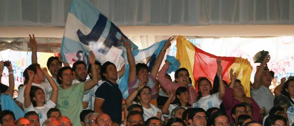 El escenario destinado al público, a los seguidores, a los militantes, aquel en el que se miden las fuerzas de movilización y apoyo, fue dominado por las agrupaciones juveniles. Los protagonistas excluyentes de la convocatoria, tanto en la carpa donde la presidenta Cristina Fernández de Kirchner dio su discurso como en el predio de la planta de energía solar, fueron la Juventud Peronista local y La Cámpora, la agrupación que fundó Máximo Kirchner. En esos dos puntos neurálgicos de clamor popular, la distribución de fuerzas estuvo repartida. En la carpa, la JP dominó en cantidad de militantes y en arengas, mientras que en el escenario externo La Cámpora se hizo notar más a fuerza de bombos y cantitos de respaldo a Cristina. Y la respuesta de la Presidenta frente a esas demostraciones de afecto fue igual: bailó y tiró unos pasitos para ambas agrupaciones cuando éstas entonaron los cánticos.