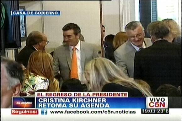 Durante su primera aparición pública luego de la operación de las tiroides y en el día en que retomó el poder tras la licencia, la Presidenta se refirió a su enfermedad y bromeó: ‘Yo dije, si me pongo un pañuelo, mañana algunos dirán: ésta no se operó‘.