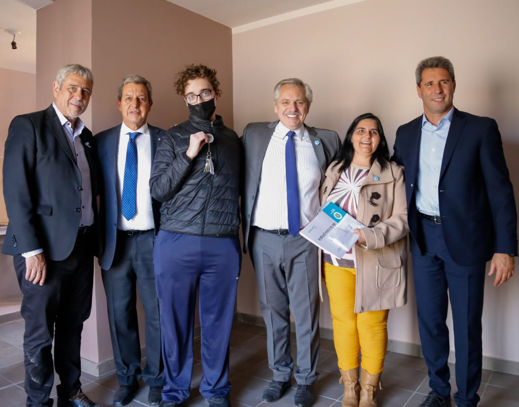 En su primera actividad en San Juan, el presidente Fernández se dirigió hasta el Barrio Las Pampas, ubicado sobre calle Mendoza, entre 12 y 13, en Pocito. El centro habitacional fue prometido por el propio mandatario nacional cuando vino a San Juan tras el sismo del 18 de enero de 2021, que derrumbó o volvió inhabitables unas 3.000 viviendas en total.