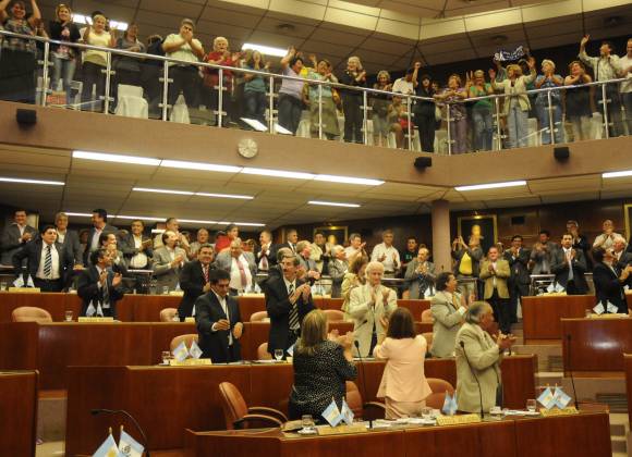 Aplausos, júbilo y ritmo de batucada que venía del hall de acceso. El clima de festejo lo puso el justicialismo en el final de la sesión extraordinaria que se celebró ayer en la Cámara de Diputados, donde logró aprobar por abrumadora mayoría la enmienda constitucional que habilita a José Luis Gioja a ir por su tercer mandato consecutivo. Los basualdistas insistieron en que el proyecto es inconstitucional y los oficialistas respondieron con tres ejes argumentales: defendieron la legalidad de la iniciativa, hablaron de una "gestión exitosa" que justifica la continuidad y aseguraron que la mejor forma de definir el debate es con el voto de la gente. Ahora, en la consulta popular convocada para el 8 de mayo, los sanjuaninos deberán decir si están de acuerdo o no con la re-reelección.