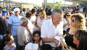 El gobernador Gioja se mostró muy feliz de poder entregar nuevas viviendas al decir que “todos han sido sorteados en su momento, hay muchos suplentes en este barrio y las casas son para que las familias sanjuaninas cada día estén más unidas y entre todos podamos pelear, por un San Juan mejor que es lo que todos queremos”.