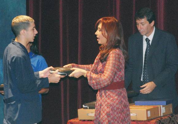 En la ceremonia realizada en el Teatro Cervantes, transmitida por cadena nacional de radio y televisión, la presidenta detalló que el programa es sostenido por "la Anses, el ministerio de Educación, el de Planificación Federal y la Jefatura de Gabinete", áreas que implementan la entrega de los insumos informáticos.