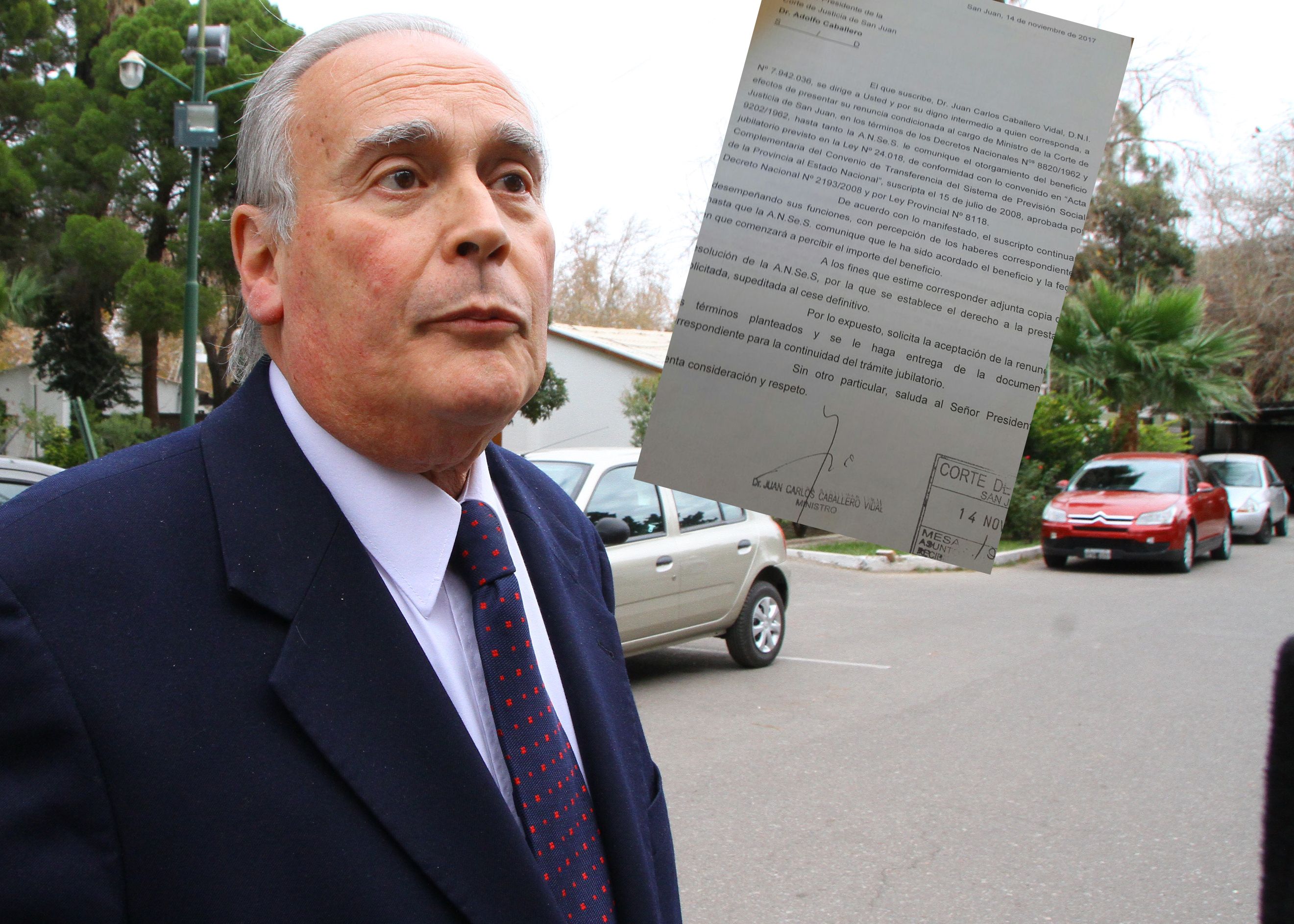 En la nota de renuncia al cargo de Ministro de la Corte de Justicia que presentó esta mañana, Juan Carlos Caballero Vidal aclaró que “continuará desempeñando sus funciones, con percepción de los haberes correspondientes, hasta que la ANSES comunique que le ha sido acordado el beneficio –de la jubilación- y la fecha en que comenzará a percibir el importe del beneficio”.