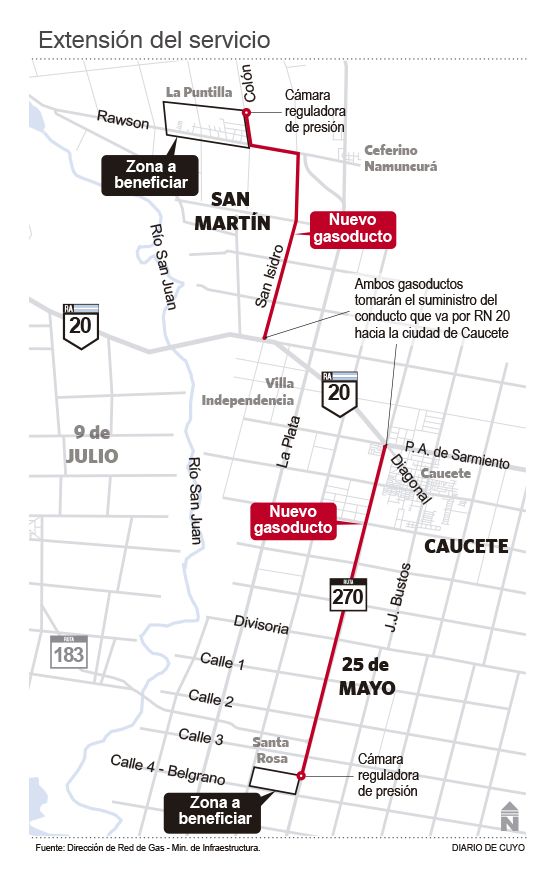 Las obras son clave porque se trata de un servicio básico y pese a los tarifazos, el sistema de gas natural sigue siendo más conveniente para una familia, en lo económico y en la disponibilidad, que el uso tradicional de garrafas. Fue el propio gobernador Sergio Uñac quien anunció el año pasado en visitas a 25 de Mayo y San Martín que iba a poner el servicio, por lo que la Dirección de Red de Gas se puso a trabajar en los proyectos y ya los tiene elaborados.