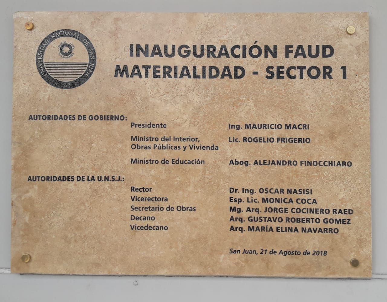 Justo en momentos donde la Universidad Nacional de San Juan, a través de su rector Oscar Nasisi, mostró las firmes diferencias con las políticas nacionales para con las universidades públicas, desaparecieron dos placas de recientes inauguraciones donde sale nombrado el presidente Mauricio Macri.