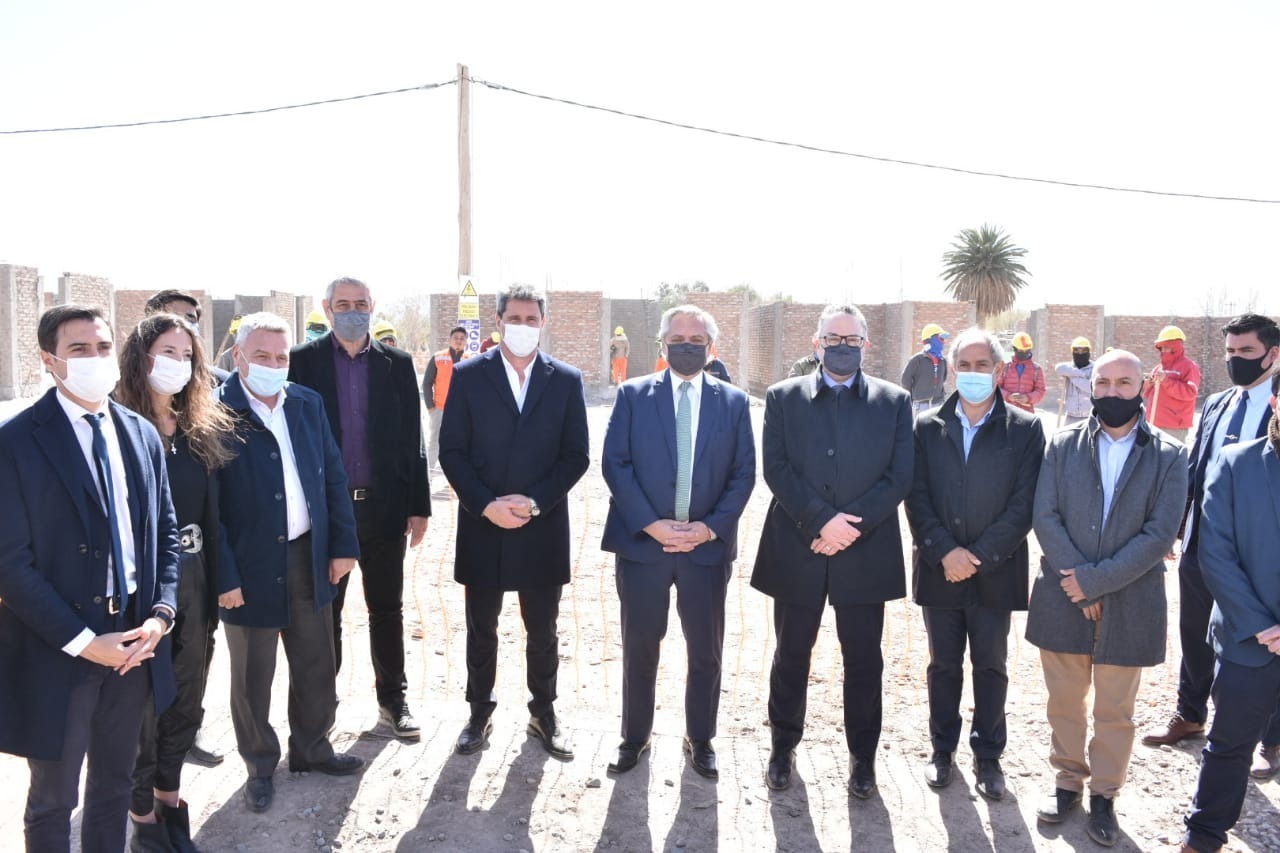 Recordó su visita de urgencia a la provincia el día después del brutal sismo: “Cuando allá en enero vinimos y con Sergio (Uñac) recorrimos todo esto, nos pusimos manos a la obra y le dije a Jorge Ferraresi (ministro de Desarrollo Territorial y Hábitat de la Nación Argentina) ‘vamos ya trabajar’, y veo con mucha alegría como crecen las paredes, como van avanzando, es un barrio muy grande, con más de 800 casas, es la solución de 837 familias y es lo que más me reconforta, y quise venir a ver como vine cuando las casas estaban destruidas de lo que van a ser las nuevas casas de los que habiten acá”.