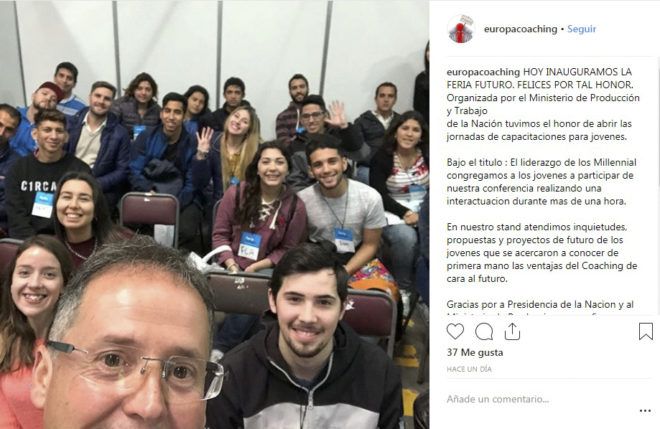 Fernández se vanaglorió de haber tenido «el honor» de inaugurar esa jornadas «para capacitaciones de jóvenes». «Bajo el título el liderazgo de los millenials congregamos a los jóvenes a participar de nuestra conferencia realizando una interacción durante más de una hora. En nuestro stand atendimos inquietudes, propuestas y proyectos de futuro de los jóvenes que se acercaron a conocer de primera mano las ventajas del coaching de cara al futuro. Gracias a la Presidencia de la Nación y al Ministerio de Producción por confiar en nosotros y en nuestros contenidos temáticos para este cambio de mundo en el que nos encontramos inmersos», escribió Fernández en la cuenta de Instagram de su empresa donde cuelga fotografías de sus años de esplendor en Marbella (1990-2006) con personajes de la talla de el Nobel Camilo José Cela o el cantante Julio Iglesias. Eran años en los que cometió, según las acusaciones de la Justicia española, varios delitos de corrupción.
