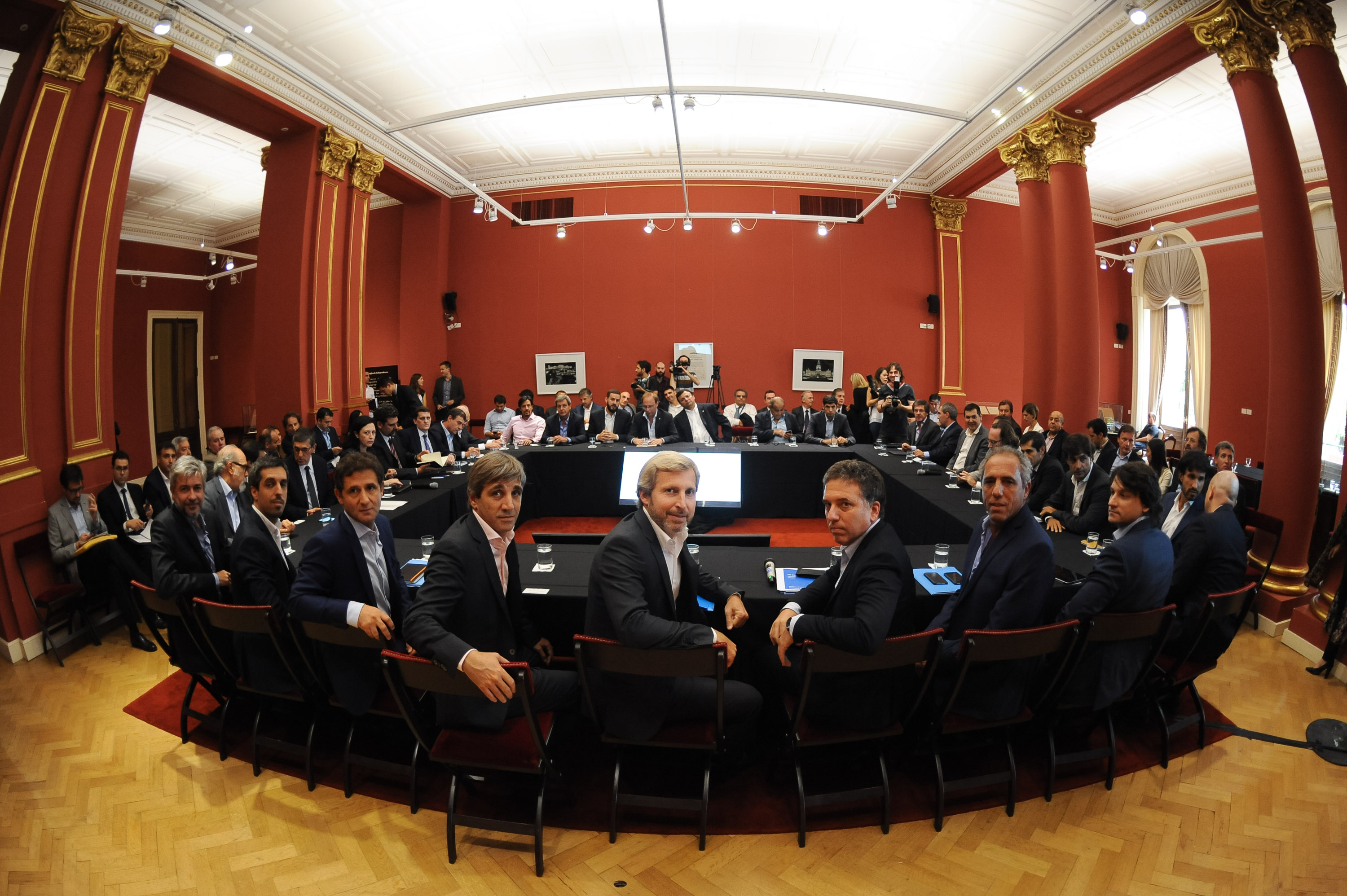 El ministro del Interior, Obras Públicas y Vivienda, Rogelio Frigerio, acompañado por sus pares de Hacienda, Nicolás Dujovne, y de Finanzas, Luis Caputo, recibieron a 23 ministros y representantes de las carteras de economía y hacienda provinciales y de la ciudad Autónoma de Buenos Aires en el marco del II Encuentro para el Fortalecimiento del Federalismo, con el propósito de consolidar “una agenda para debatir criterios de coparticipación”.