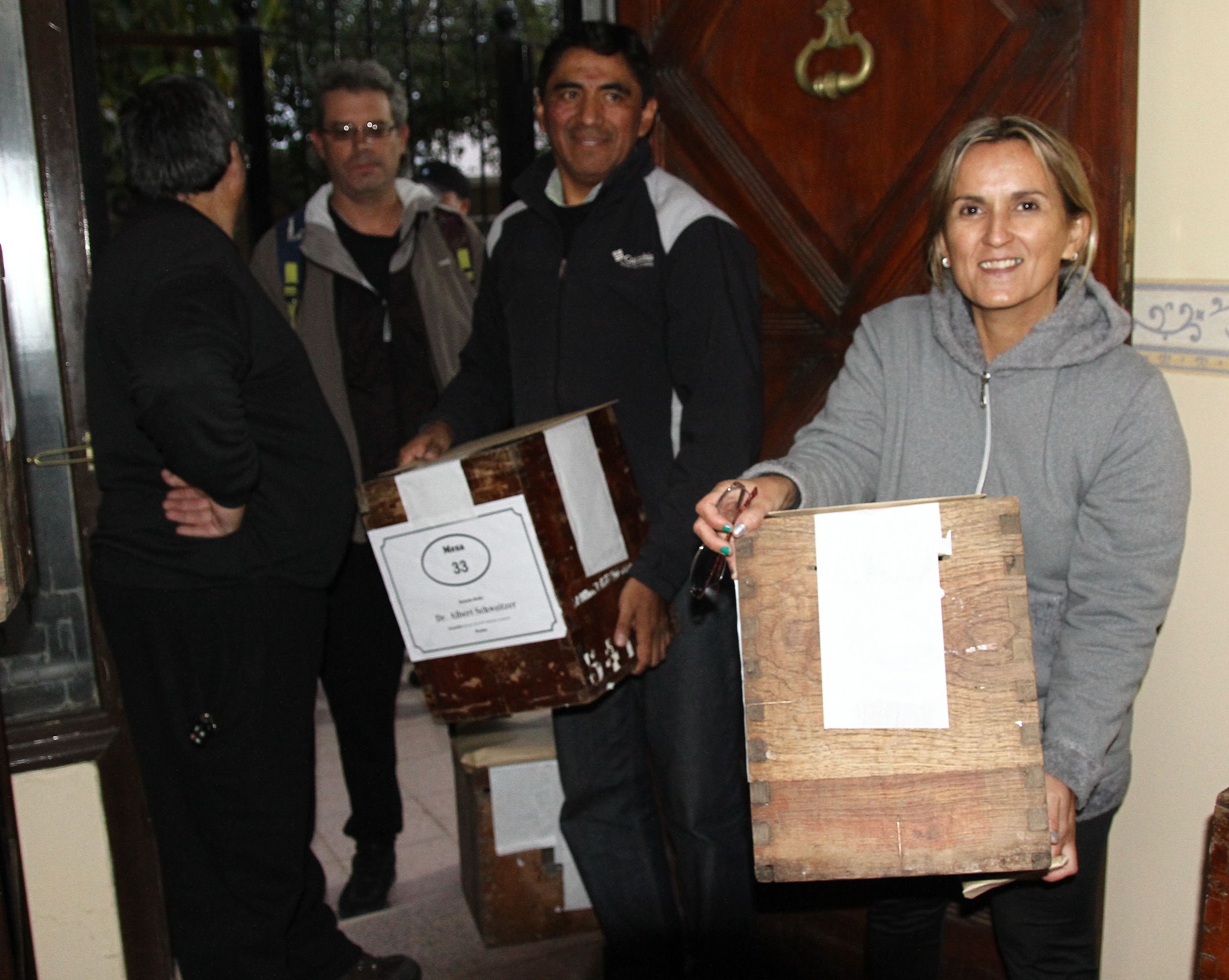 Votos. Antes de las 19 empezaron a llegar las urnas al local de la Junta Electoral, que funcionó en la calle Aberastain pasando Córdoba.