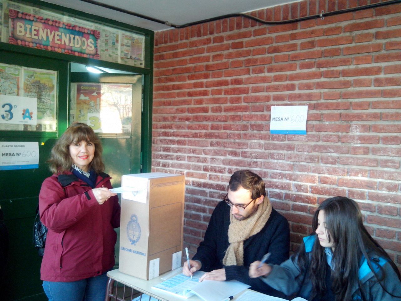 A las 8, la precandidata a senadora Mary Garrido votó en la Escuela Provincia de Catamarca, mientras que el que encabeza la lista de senadores, el joven dirigente Sergio ‘Checho’ Campos lo hizo a la misma hora pero en el Colegio Parroquial de Santa Lucía.