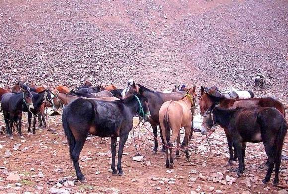 Las bestias son las encargadas de transportar en las albardas ajustadas a sus lomos la comida, carpas, la ropa y los equipos de comunicaciones para la transmisión satelital. Lo único que suele trasladarse en helicóptero, tanto al refugio de Alto de Las Frías como a Sardina, en el Valle de Los Patos Sur, son los equipos electrógenos para proveer de energía a los expedicionarios.