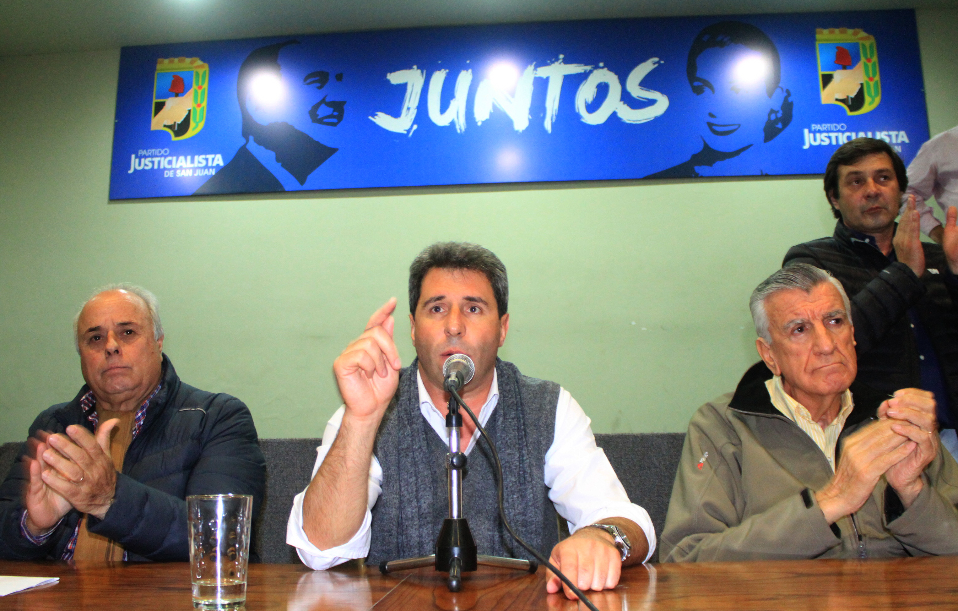 En la sede del PJ y ante autoridades, dirigentes, funcionarios y simpatizantes, José Luis Gioja trató de despegarse de las pintadas contra el gobernador Sergio Uñac que lo tildaban de traidor. “No tengo las manos con aerosol”, aseguró el exmandatario, quien además resaltó que se trata de una práctica del “adversario” para dividir y que está trabajando por la unidad. A su lado, el pocitano y presidente del justicialismo local, remarcó que el peronismo está unido y que “en agosto vamos a ganar bien en las primarias y muy bien en las generales de octubre”.