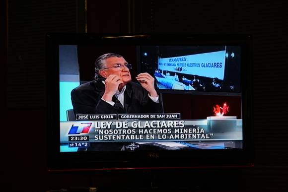 A su turno, el gobernador de San Juan desestimó los miedos sobre contaminación -"no hay un solo caso, es mentira, ¿o acaso con la velocidad de las comunicaciones creen que no habría salido a la luz?”, se preguntó, pasó a explicar los motivos por los que se opone al proyecto Filmus-Bonasso: dijo por qué es difuso el término periglaciar que usa el proyecto de Diputados, instó a convocar a los expertos para definirlo en las leyes y reclamó que las provincias no fueron incluidas en la ley. "Se creen que los del interior andamos con una pluma, que no sabemos cuidar los recursos naturales! Esta ley (por acuerdo Bonasso-Filmus) ha transformado en buenos a los que protegen los glaciares y en malos y envenenadores los que estamos en contra. En San Juan tenemos una ley de glaciares aprobada por unanimidad por las fuerzas políticas y se prohíbe tocar los glaciares!”, explicó. En ese momento, Gioja retrucó a la diputada Reyes y ratificó que la difusa definición de la ley de Diputados implica extender el área periglaciar hasta Buenos Aires.