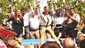 Gioja visitó Angaco para apoyar al candidato del FpV, Omar Blanco