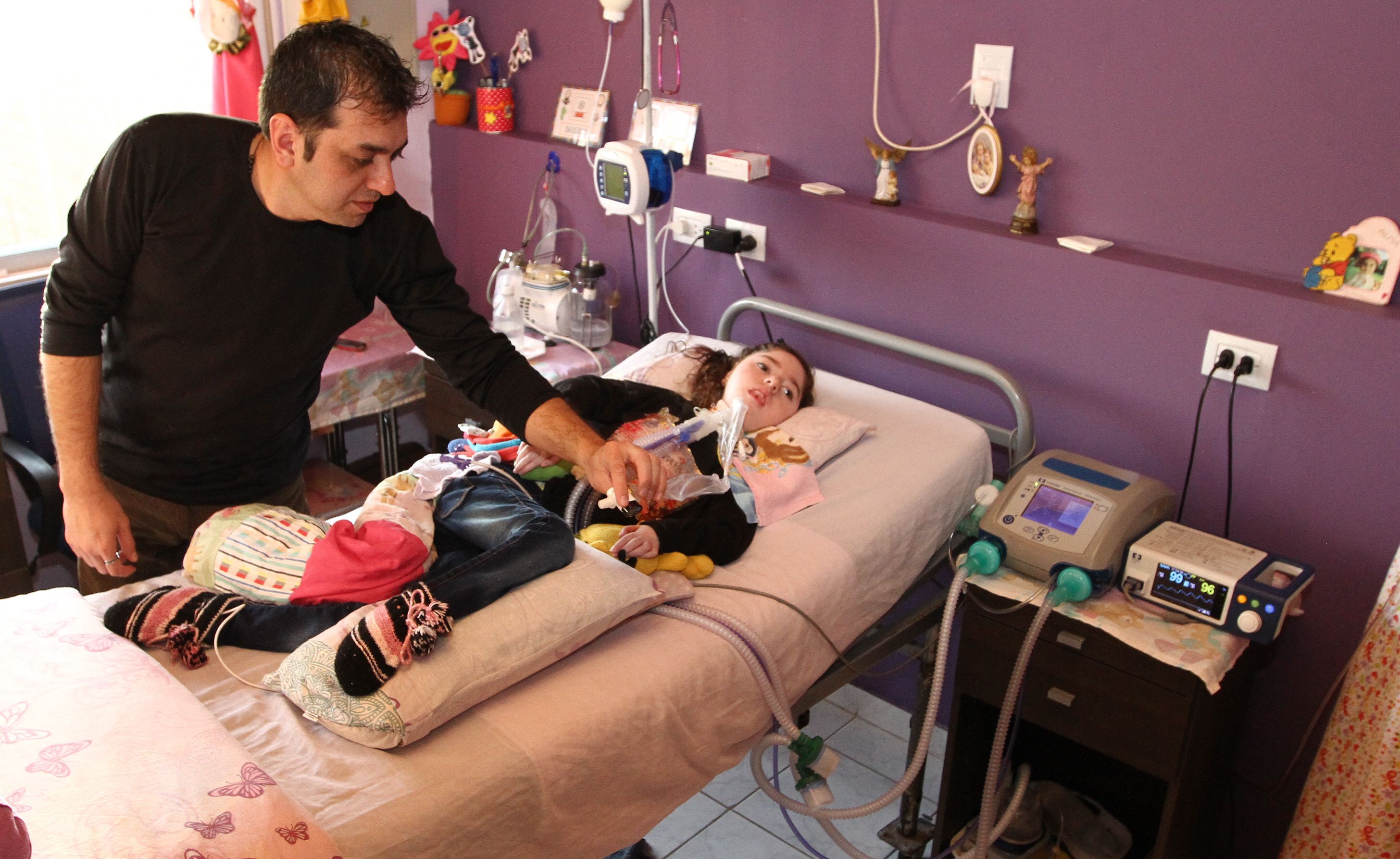 Alma Rubiño (9) sufre de atrofia muscular espinal grado 1, una enfermedad neuromuscular degenerativa y progresiva que la obliga a tener un respirador las 24 horas. El equipamiento que necesita incluye un saturómetro, un humidificador, una bomba de infusión y un aspirador de secreciones. Su padre Mauricio resaltó que la UPS es clave ante el caso de un corte de luz.