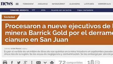 San Juan.- El pasado 12 de septiembre se produjo un derrame de solución cianurada en Veladero, fue a raíz de la rotura de una válvula. Esta mañana, DIARIO DE CUYO publicó en su versión impresa la primicia de que el juez Pablo Oritja procesó sin prisión preventiva a los nueve empleados de Barrick que estaban en la mira.