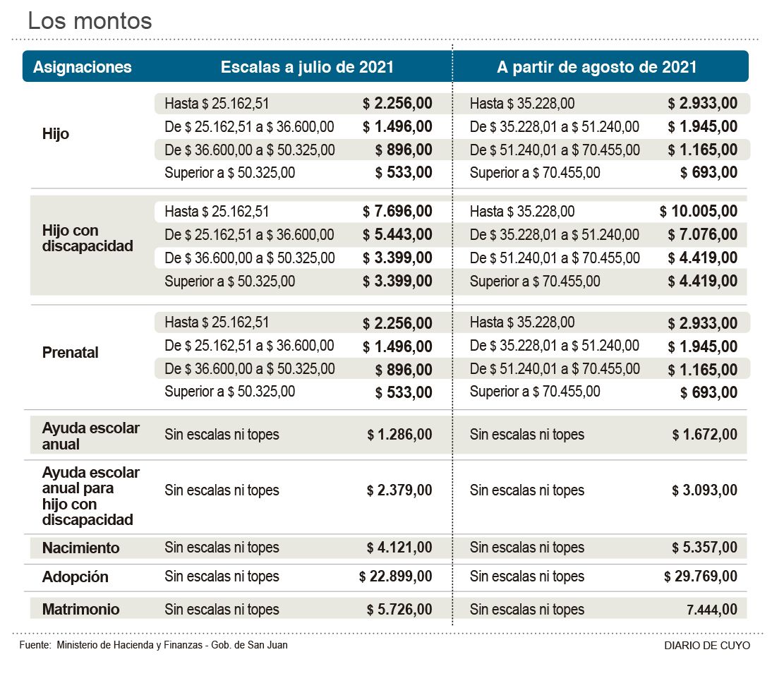 Luego de analizar las cuentas provinciales, la gestión uñaquista confirmó la decisión que representa una mejora salarial para los trabajadores estatales. Definió que el 7 por ciento de aumento que estaba previsto para octubre será liquidado a partir de este mes, por lo que los agentes recibirán, con su próximo sueldo, un incremento del 50 por ciento en lo que va del año. Además, y a pedido de los gremios, las autoridades aceptaron una nueva instancia de revisión para noviembre, ya que mantienen la promesa de que los salarios no pierdan frente a la inflación. El adelanto del tramo salarial no es lo único, dado que, como había adelantado DIARIO DE CUYO, habrá un incremento de las asignaciones familiares, las que tuvieron un cambio en las escalas, por lo que más empleados percibirán un mejor beneficio (ver infografía). Por otro lado, también se actualizó casi un 32 por ciento el pago en las tres categorías de contratados. El costo total de los tres anuncios asciende a los 593 millones de pesos.