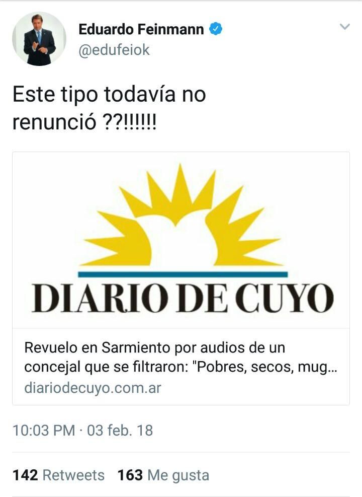 El diario mendocino MDZ replicó la información y hasta Eduardo Feinmann se animó a preguntarse en sus redes sociales “¿Este tipo todavía no renunció?”